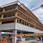 Chaque ferme, pesant environ 16 tonnes, a été levée depuis la rue à l’aide d’une grue automotrice, dans un contexte de chantier particulièrement contraint par le manque de place, l’altitude et l’environnement bâti de la station. Cette opération spectaculaire a marqué une étape clé du chantier.